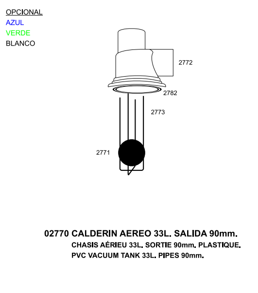 El producto CALDERIN AEREO 33L. SALIDA 90mm se encuentra en el catálogo en la página 43 con el número 2770. Agromoise le agradece y le ofrece los productos de la más alta calidad.