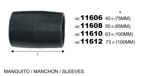 El producto MANGUITO GOMA 75mm se encuentra en el catálogo en la página 116 con el número 11612. Agromoise le agradece y le ofrece los productos de la más alta calidad.