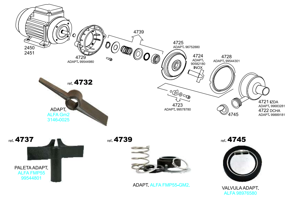 El producto PALETA ADAPT. ALFA FMP55 99544801 se encuentra en el catálogo en la página 62 con el número 4737. Agromoise le agradece y le ofrece los productos de la más alta calidad.