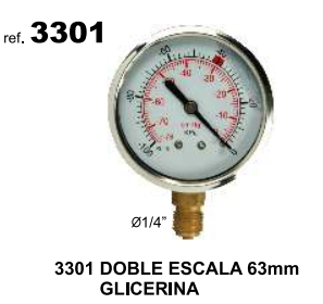El producto VACUOMETRO DOBLE ESCALA 63mm GLICERINA se encuentra en el catálogo en la página 49 con el número 3301. Agromoise le agradece y le ofrece los productos de la más alta calidad.